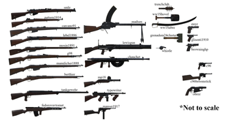 นอกจากนี้ ม็อดยังมีฟังก์ชันการทำงาน เช่น ขาตั้งปืนสำหรับปืนกลบางชนิดและดาบปลายปืนเป็นอุปกรณ์เสริมเริ่มต้นสำหรับปืนไรเฟิลที่เกี่ยวข้อง ผู้ใช้สามารถเข้าร่วมการเล่นเกมที่มีธีมสงครามโลกครั้งที่ 1 อย่างแท้จริง เนื่องจากความเสียหายและการถอยหลังของอาวุธแต่ละชิ้นเลียนแบบอาวุธพื้นฐานของเกม ม็อดนี้ใช้ฟรี โดยเน้นที่พื้นฐานที่ไม่แสวงหาผลกำไร และได้รับการสนับสนุนจากชุมชนบน Discord เพื่อการมีส่วนร่วมเพิ่มเติม